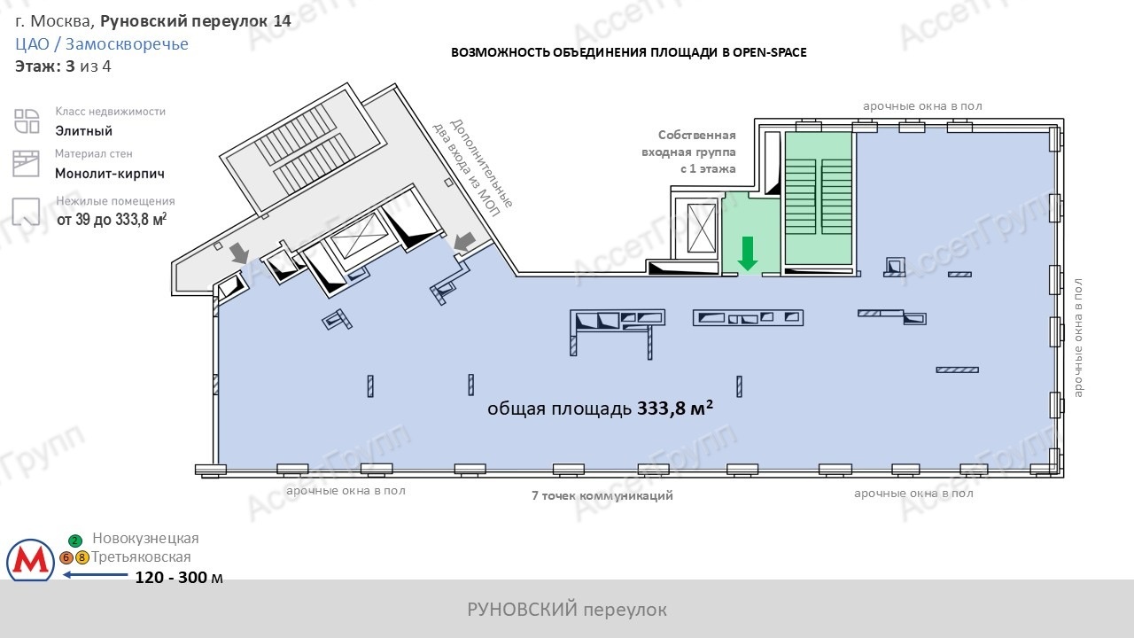 Престижный адрес, безупречное качество отделки и продуманная концепция делают объект идеальным выбором для компаний, ценящих статус и комфорт.