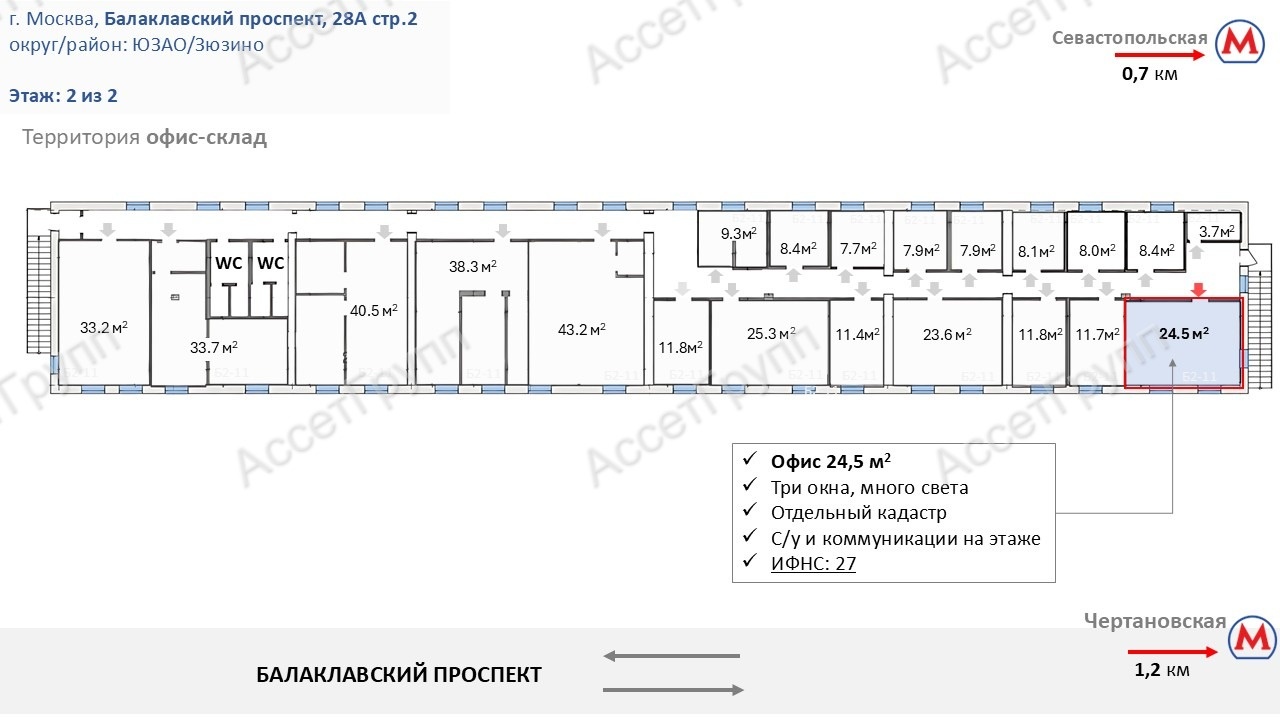 Транспорт: отличная локация с выездом Профсоюзную, Ленинский проспект, Варшавское и Каширское шоссе. Равное расстояние до ТТК и МКАД - удобная логистика для разных сфер бизнеса.