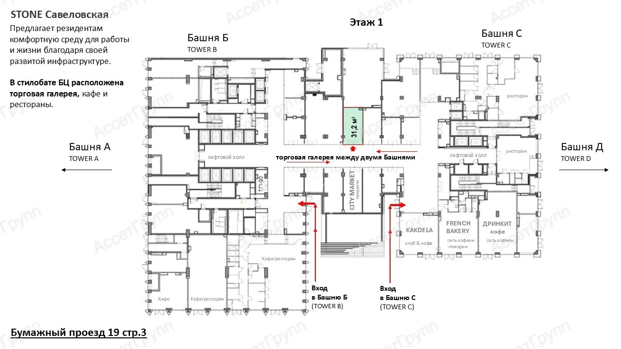 Помещение в аренду, для магазина, услуг, товаров первого спроса - в торговой галерее, объединяющей Две башни Стоун Тауэр (STONE Tower)